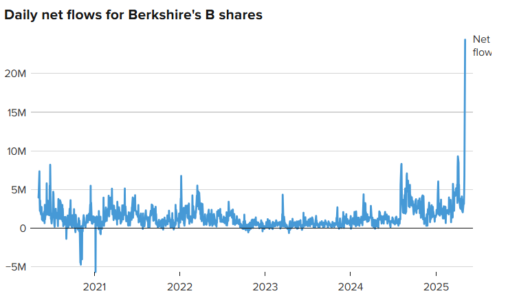 对普通人来说,巴菲特被视为最成功的投资倡导者之一——特别是通过自律和以价值为中心的视角。周一的资金流入可能会让一些市场观察人士感到意外,因为传统观点认为,散户交易员会对这位长期执掌公司的掌舵人的离开感到不安。