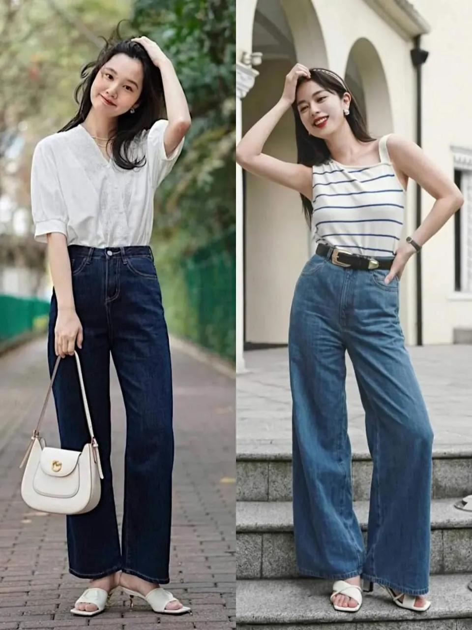 在这炎热的夏季,穿牛仔裤是一个很不错的选择,不管是牛仔直筒裤还是牛仔阔腿裤,只要裤脚不要太长,面料材质过关,那么它就非常的百搭,例如,下面搭配上条纹的上衣或者是小众设计的白色衬衫,展现出来的效果都显得比较时尚,不管穿去上班,逛街,约会都完全没问题。