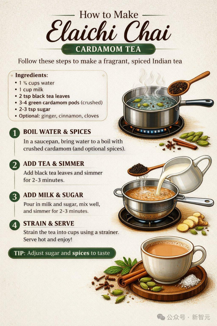 再比如,让榛子创建一个信息图,展示如何制作豆蔻茶。